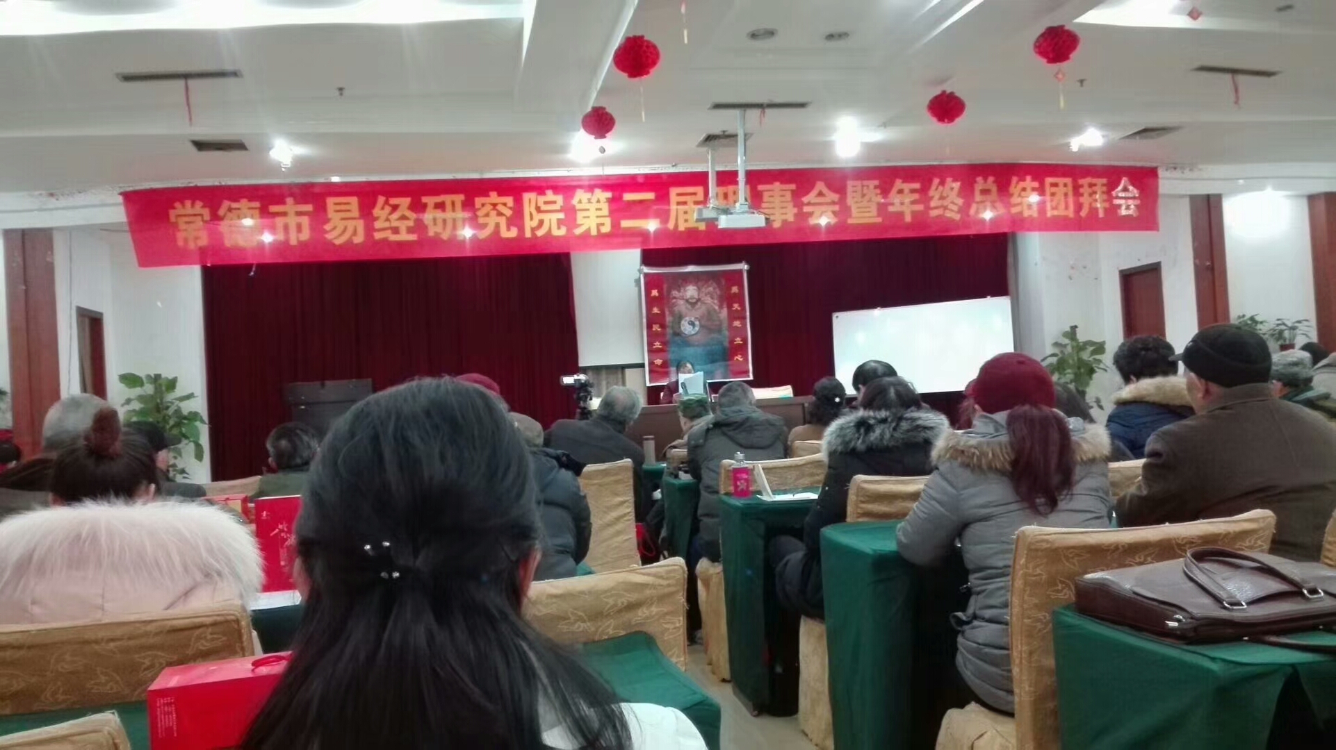 2018年1月13日常德市易经研究院在金沙大酒店会议室召开第二届理事暨年终总结团拜会。参加会议人员九十余人,常德市社科联副主席欧子成等部门领导出席会议并作了重要讲话。会议认真总结了易经研究院首届理事会近五年来的工作情况并对第二届理事会工作作了新的长远规划。同时2名老师从堪舆、四柱命理等方面还进行了演讲,使会议开得很成功。