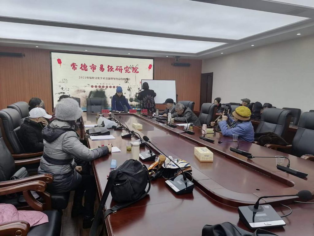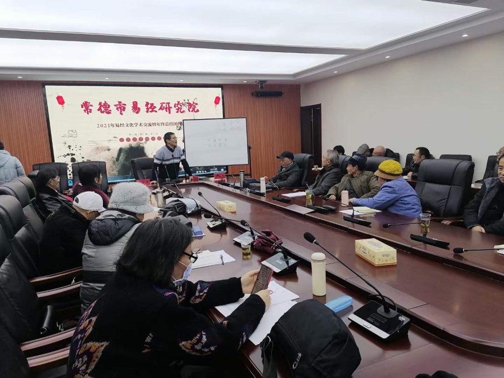 常德市易经研究院召开2021年度年终总结团拜暨学术交流会 常德市易经研究院于2021年12月26日召开2021年度年终总结团拜暨易经文化学术交流会议。会议认真总结了2021年度易院所做的工作和取得的成绩及经验并对2022年度的工作进行了部署和设想。会上有五位专家老师分别从风水、命理、象数等方面将自己的亲身实践经验采取图文并茂的论证方式做了生动演讲,使参会人员深受启发和教育。市社科联王一婵主任出席会议并作了重要讲话。
